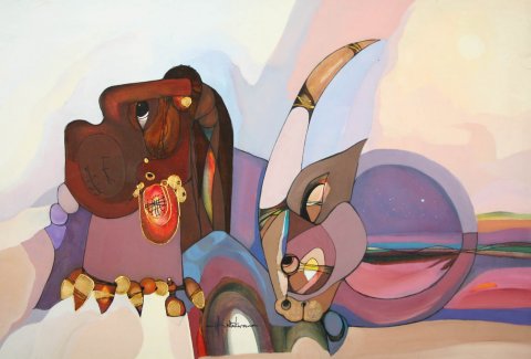 Hargreaves, who lived in Dlamini, first gained recognition for his art when he designed a cover for the album "Dollar Brand Underground in Africa." He went on to design for Letta Mbulu's record company, and also painted the designs for the costumes of the cast of the multiracial show "Black and White is Beautiful" which toured overseas with Welcome Msomi. Hargreaves, who is also an accomplished sculptor and musician - he plays double bass, sax and piano - has also lectured on South African art both here and in the USA.